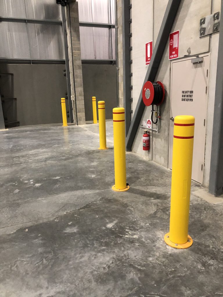 | S101C-900P | 101 | 900 | Powder Coated | Sentry Surface Mount Bollards Dimensions: 101mm OD Length: 900mm Materials: Hot Dip Galvanised Steel Pipe Base Plate: 190mm dia. Top: Cap Top (Knock On) Finish: Powder Coated Y14 Safety Yellow Tape: Class 1 MSA Branded Red reflective tape |